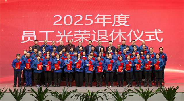 會(huì)議為2025年度退休員工舉行光榮退休儀式。公司黨委委員、紀(jì)委副書(shū)記、副總經(jīng)理孫玉濤宣讀退休員工名單,黨委書(shū)記、董事長(zhǎng)盛守祥為退休員工代表頒發(fā)榮譽(yù)證書(shū)。退休員工代表王立松作為退休職工代表發(fā)言,深情訴說(shuō)數(shù)十載與公司同行的點(diǎn)滴,誠(chéng)摯送上對(duì)公司的衷心祝福。
